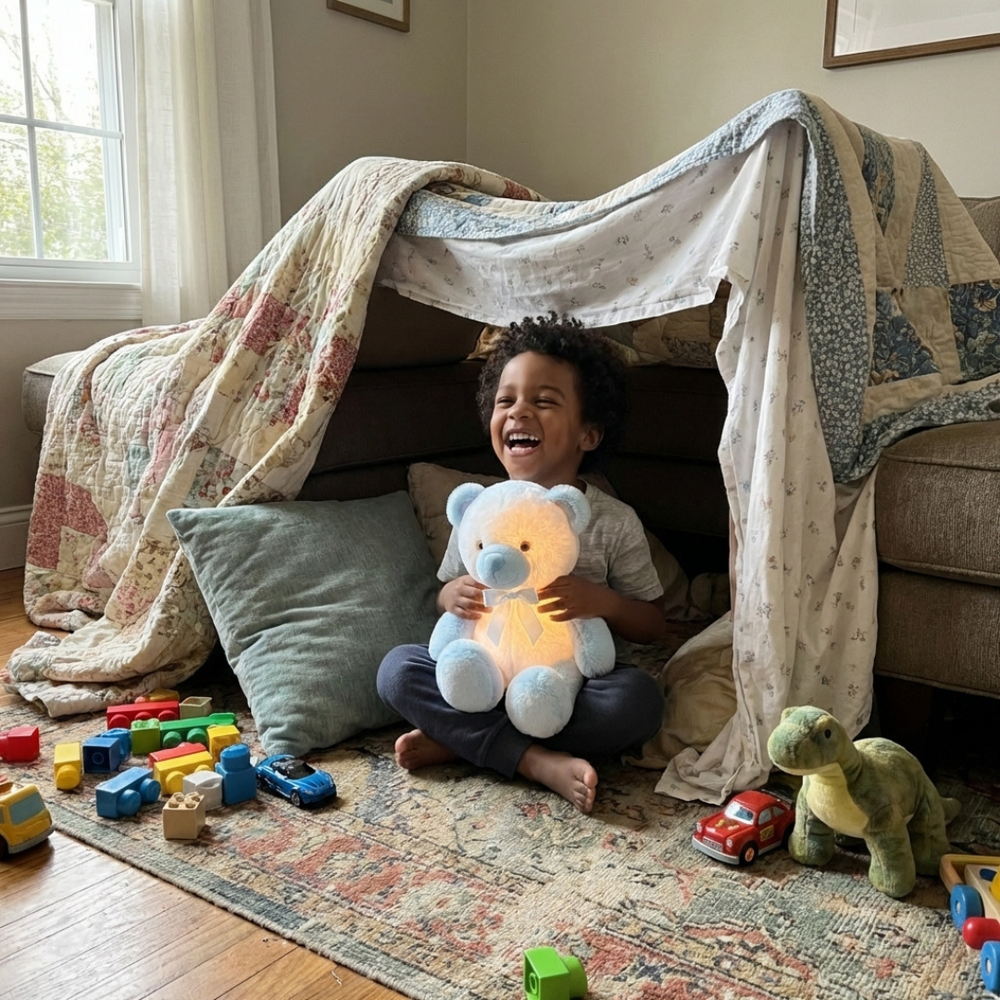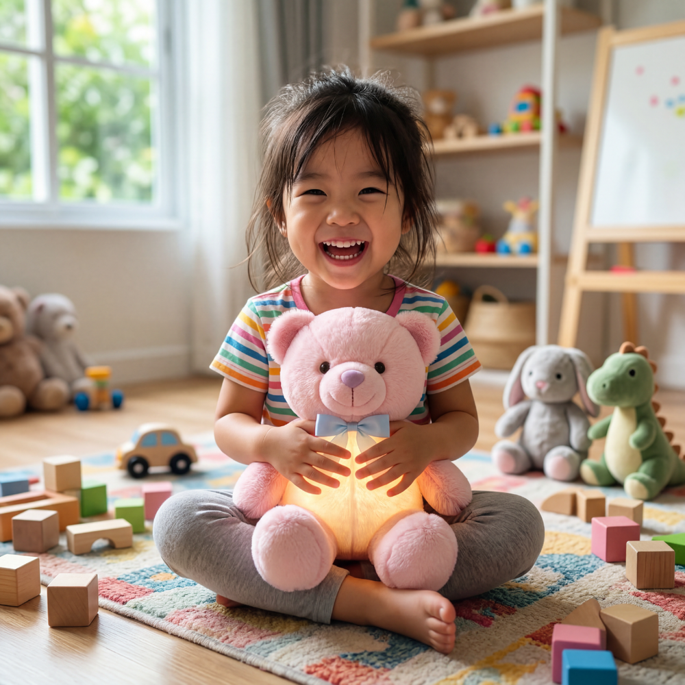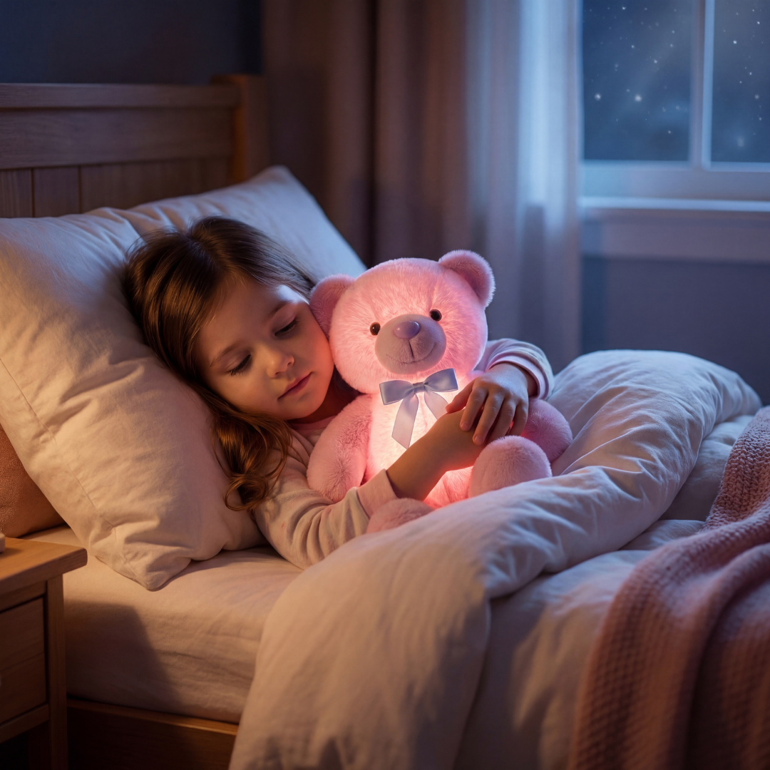 A soft glowing teddy that comforts kids and makes bedtime feel safe.