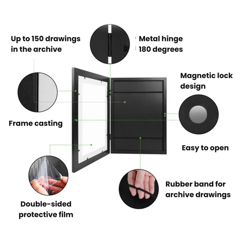 The Toddler Art Display Frame is the ultimate keepsake for showcasing your little artist's creations. Designed to accommodate A4 and A3 drawings, this stylish frame not only displays artwork but also serves as a smart storage solution for your child's masterpieces.